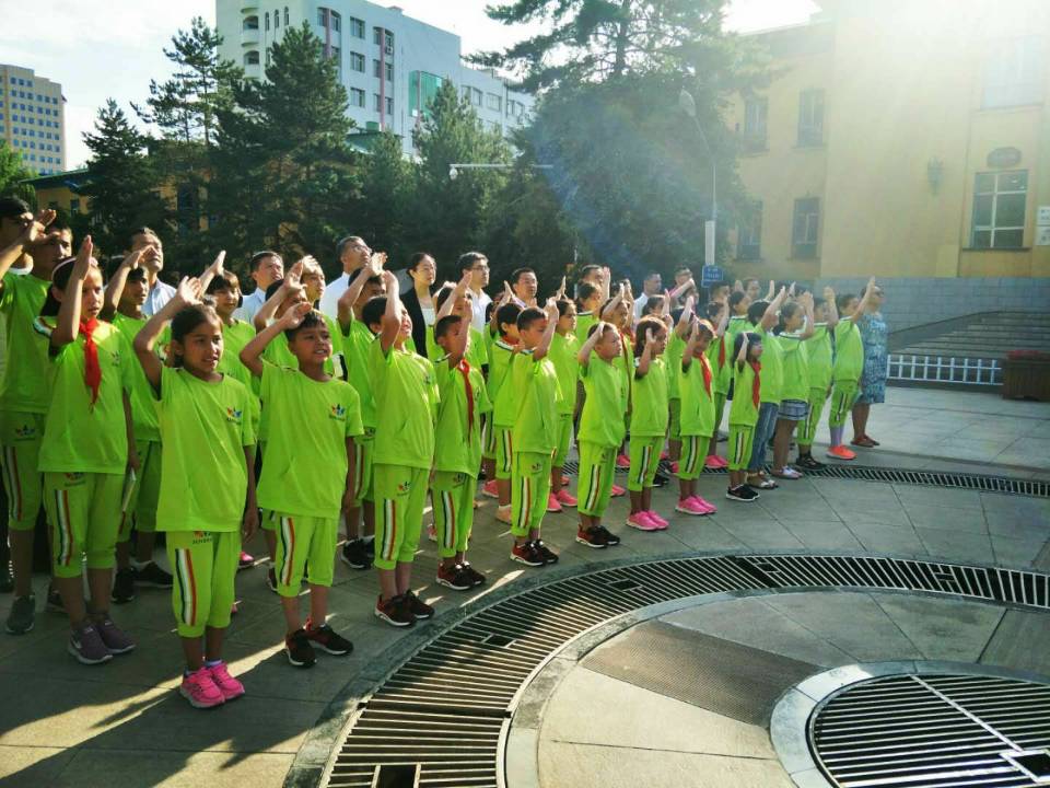 最后,凯赛尔·阿不都克热木校长发表国旗下讲话。他首先代表校党委向远道而来的和田墨玉县扎瓦镇的老师、同学们致以热烈的欢迎。在看到孩子们一张张稚嫩、朴实的面庞,他仿佛看到了小时候的自己,他说“我经历过许多次升国旗仪式,可此情此景,还有可爱的你们,将令我终身难忘。”他动情地讲起自己小时候和扎瓦的孩子们一样出生、成长在南疆,不同的是孩子们赶上了新时代,是党领导下的中国特色社会主义新时代。他还说“希望和田的同学和子校的同学们能通过一周的夏令营活动,在我们的首府一起感受美丽的城市、先进的文化和开放的思想氛围,充分领略首府现代化建设的日新月异。希望同学们怀有一颗感恩的心,感恩党的好政策、感恩党和国家对我们的关怀关爱,感恩新时代给予我们的机遇和挑战。对自己的家乡脱贫致富要充满信心,在党的关怀下,在社会各方的帮助和支援下,在新疆医科大学的真情帮扶下,全面小康一个也不能少,共同富裕的路上,扎瓦镇也不能掉队。你们将见证和经历2035年基本实现社会主义现代化,2049年建国100周年建成社会主义现代化强国等重要历史节点,这些宏伟目标的实现,需要你们积极参与、建功立业。希望你们努力学习,掌握科学文化知识,掌握过人本领,在学习实践中成长成才,长成参天大树,成为对社会有用的人。”最后他还衷心希望孩子们将此次夏令营的所见所闻、所学所思带回你们的学校,讲给更多的小伙伴,带领他们共同进步!希望每位扎瓦镇的同学们都能与子校的同学们交朋友,彼此了解,彼此关心,彼此鼓励,共同成长。