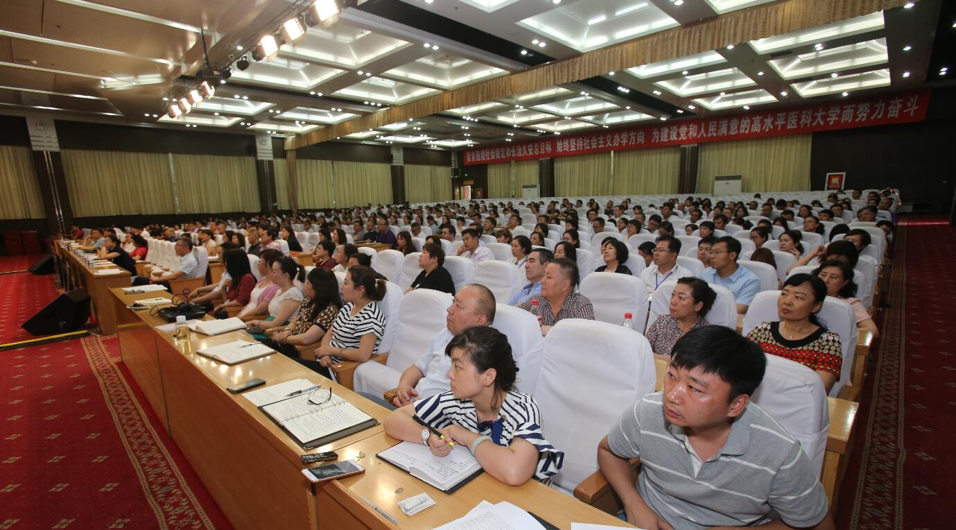7月2日至4日,由哈尔滨医科大学副校长曹德品教授一行7人组成的专家组,对我校开展了本科教学工作审核准备性评估。7月4日下午,学校在临床教学楼800人会议室召开了专家组反馈会。会议由专家组组长曹德品教授主持。