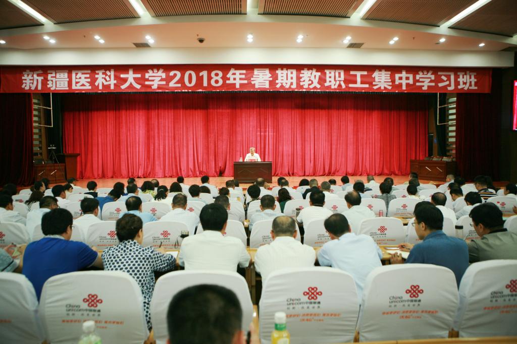7月9日上午,新疆医科大学2018年暑期教职工集中学习班正式开班,校党委书记高发水在临床教学楼800人主会场通过视频会议系统为全体教职工开讲第一课。