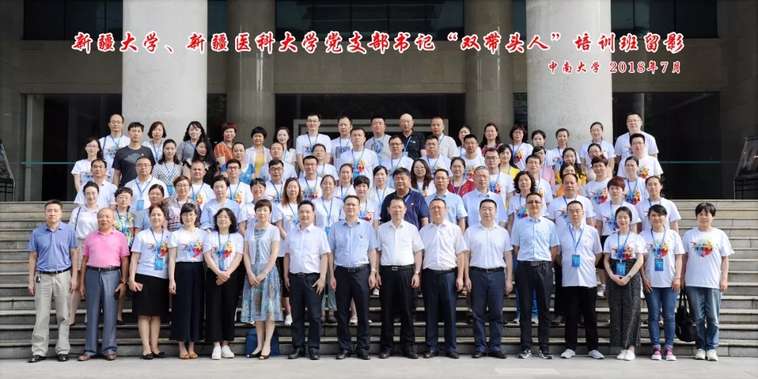 7月9日,新疆大学、新疆医科大学党支部书记“双带头人”培训班开班仪式在中南大学科教楼一会议室举行。中南大学党委常务副书记陶立坚、新疆大学党委常委、组织部部长陈建平、新疆医科大学党委组织部副部长阿地力·依沙木丁等领导出席仪式,仪式由中南大学党委组织部部长李景升主持。