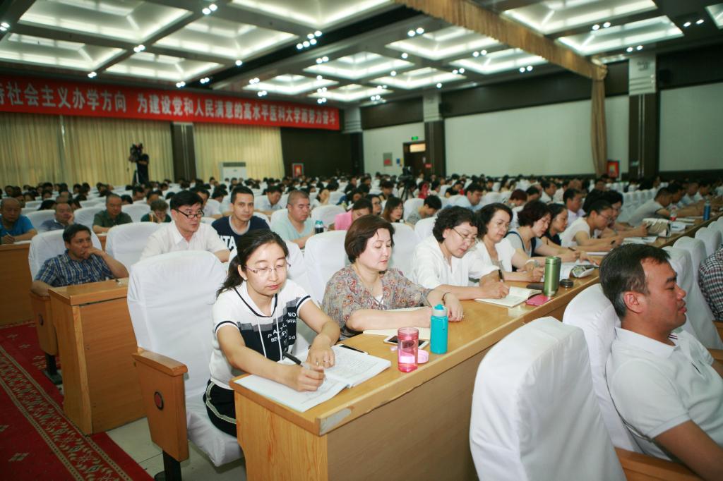 今天上午,我校邀请到新疆社科院中亚研究所研究员马品彦在临床教学楼800人礼堂做了主题为“认清‘三股势力’本质 维护新疆社会稳定和长治久安”的专题讲座。校党委常委、宣传部部长赵翠芳主持会议。全校教职工2700多人通过视频会议系统聆听了专题讲座。