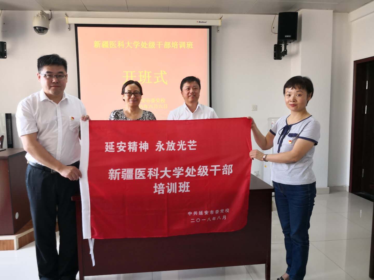 开班仪式还对我校处级干部培训班授"延安精神永放光芒"的班旗。