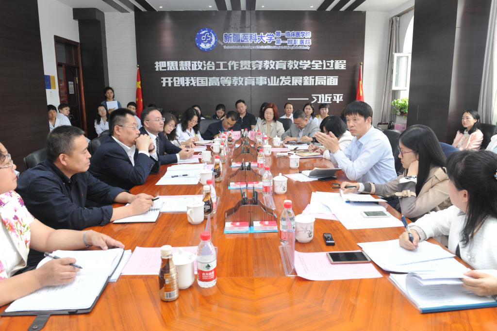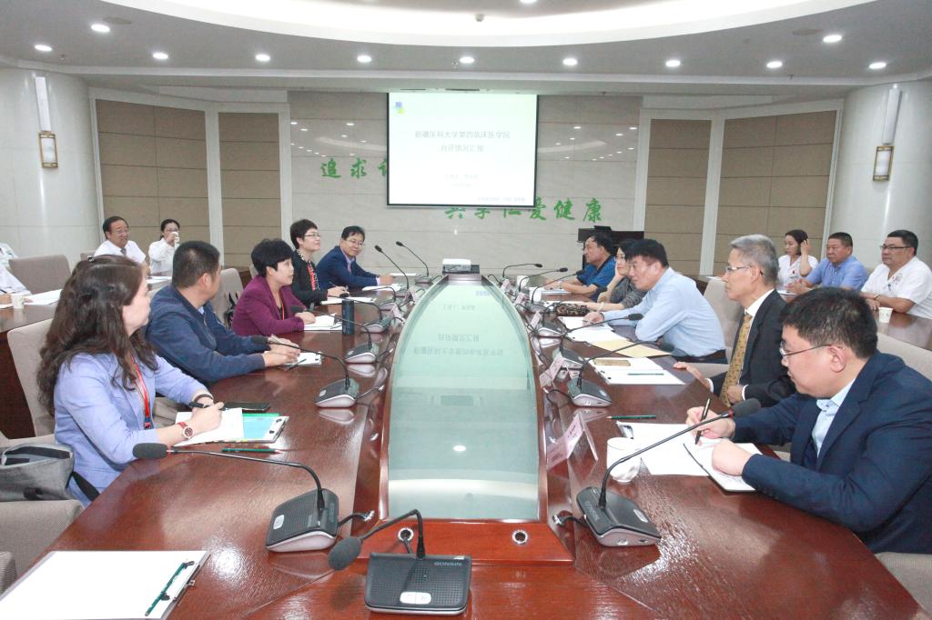 下午,新疆医科大学第四临床医学院举行本科教学工作审核预评估会议。北京中医药大学教务处处长闫永红、南京中医药大学继续教育学院文庠听取汇报并现场检查了相关资料。会上,院领导做了自评估情况汇报。同时进行了院长、学生代表的访谈交流;教研室主任、教学职能管理部门的交流;详细查阅了学院教学管理与教研室管理档案,调阅了试卷、形成性评价、自主学习、教学反馈、临床实习管理评价与反馈等支撑材料。