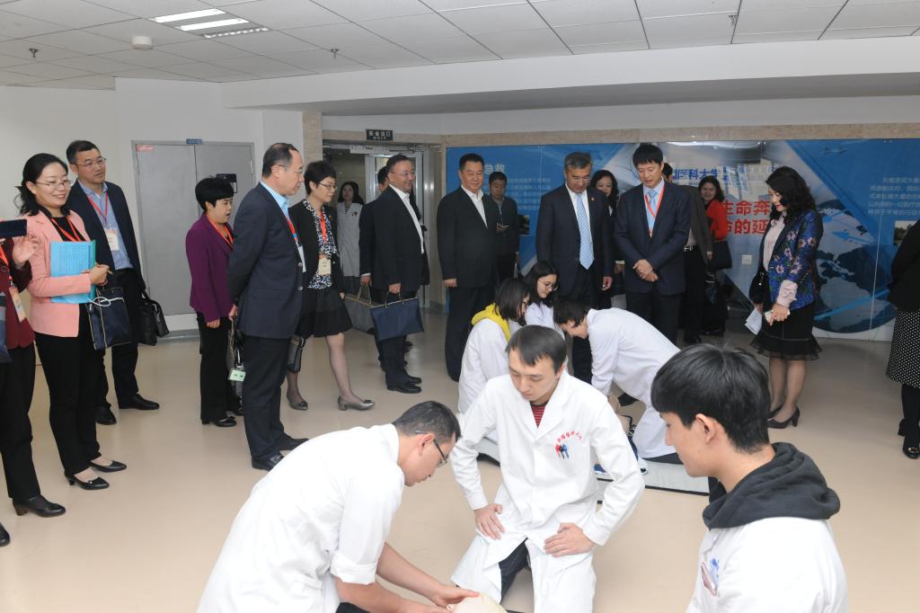 今天上午,专家组一行来到新疆医科大学第一临床医学院临床技能培训中心(模拟医学培训部),实地查看了本科生临床技能培训情况。专家组一行参观了技能培训中心、模拟培训部、模拟门诊、模拟手术室、微创技能培训部、模拟病房、穿刺培训室等临床技能培训场地,并对如何更好的做好临床技能培训提出了建议。