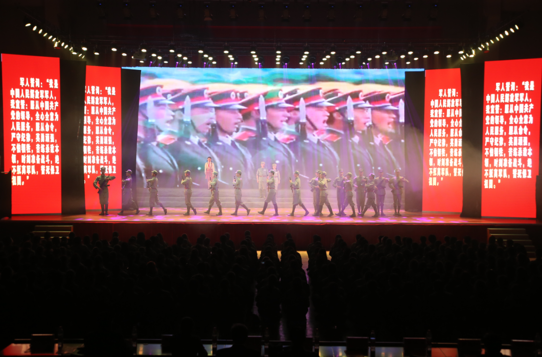每一段旋律都激荡热血交响,每一个节目都写满奋勇荣光。一首《过雪山草地》,悠扬的歌声配合演员精彩的表演,展现了红军在恶劣环境中的革命乐观主义精神和“不怕难”的钢铁意志,场下观众仿佛与红军将士一同在雪山和草地间艰难跋涉,让人为之动容。《大刀进行曲》中演员手持大刀,矗立在舞台中央,浑身散发出使敌人不寒而栗的勇猛之气,坚定的眼神果敢有力,一句句铿锵的唱词如同战斗的号角,催人奋进。台下观众一次次鼓掌。接着《我站立的地方就是中国》《为了谁》等一首首经典名曲生动展现了边防战士脚踏国土守卫国门的情怀,深情讴歌了人民子弟兵在和平年代的奉献精神与使命意识,句句感人肺腑。随后,一首《祖国不会忘记》,通过情景还原,配合LED屏幕同步播放的经典电影画面,观众们仿佛跟随王学礼、李锡贵等众多英模的脚步,到了那个战火纷飞的年代。他们把自己的青春热血献给了自己深爱着的祖国。场下观众们纷纷鼓掌表达对革命先辈的无限缅怀和景仰之情。由官兵自己编排的《主席的话儿记心上》,在动听的歌声中,荡漾着对伟大领袖至亲至切的热爱之情与无限景仰,浸透着官兵坚定的信念与担当强军重任的勇气和信心。