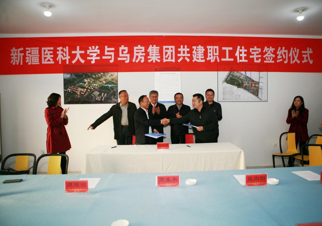 高发水书记在签约仪式上说,在自治区党委、政府和乌鲁木齐市委、市政府的关心关怀和大力支持下,乌房集团以更高的政治站位、以勇于担当的作为,对涉及我校教职工切身利益的住宅建设问题给予巨大支持。这种无私、真诚和大度,表现出了作为国有企业的社会责任和使命担当。全体教职员工将铭记于心。在乌房集团的全力支持下,我校新校区建设和教职工住宅建设速度将大大加快,新医人有了更多的获得感和幸福感。我们感谢乌房集团帮助新疆医科大学开启了一个新的篇章,希望今后双方在健康保障、医疗服务等更多领域开展深度合作。