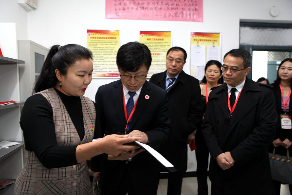 专家组查看学生党员活动室相关材料