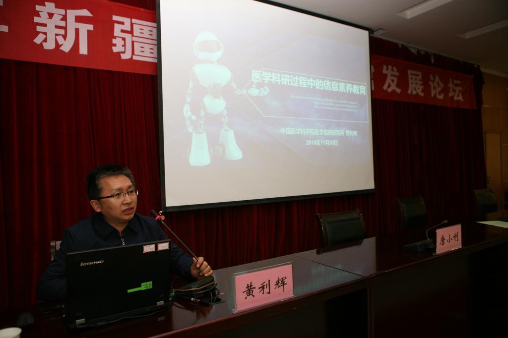 在论坛上,中国医学科学院/北京协和医院信息研究所唐小利副所长、中国医学科学院/北京协和医学院医学信息研究所医学信息资源与知识服务中心黄利辉副主任、李爱花副研究员等通过案例分析、图文展示等多种形式对科技查新、学科评价、专利分析、新馆建设等多方面进行详细阐述,并提出建设性意见,为新疆医科大学图书馆未来的发展提供了指导建议。