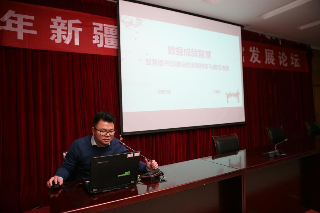 随后,结合我校新校区图书馆的建设构想,新疆农业大学图书馆副馆长唐杰波做了《图书馆的新馆建设理念和设计》的专题讲座,唐副馆长以先进的图书馆管理理念、独到的建设设计实践经验,给新校区图文信息中的建设提供了宝贵的建议。最后,针对图书馆数字化资源的建设,维普公司专业技术培训师做了《数字图书馆数据服务平台建设》”的报告,为新校区智慧图书馆的构建描绘了美好蓝图。