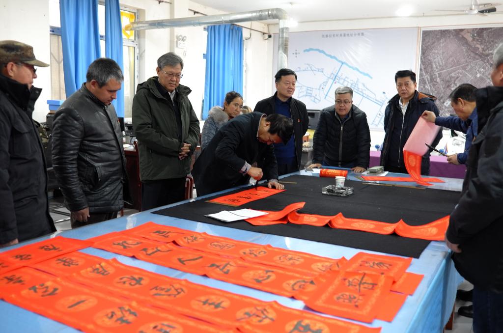 12月15日,尽管离新年还有10多天时间,墨玉县扎瓦镇托格拉克村却是一派迎新年的喜庆气氛。这一天,新疆医科大学邀请赵福生、车夫两位书法家来到墨玉县扎瓦镇,专门为村民们书写新一年的对联。新疆医科大学党委书记高发水还给村里赴新疆医科大学务工人员的家属送上火红的对联。