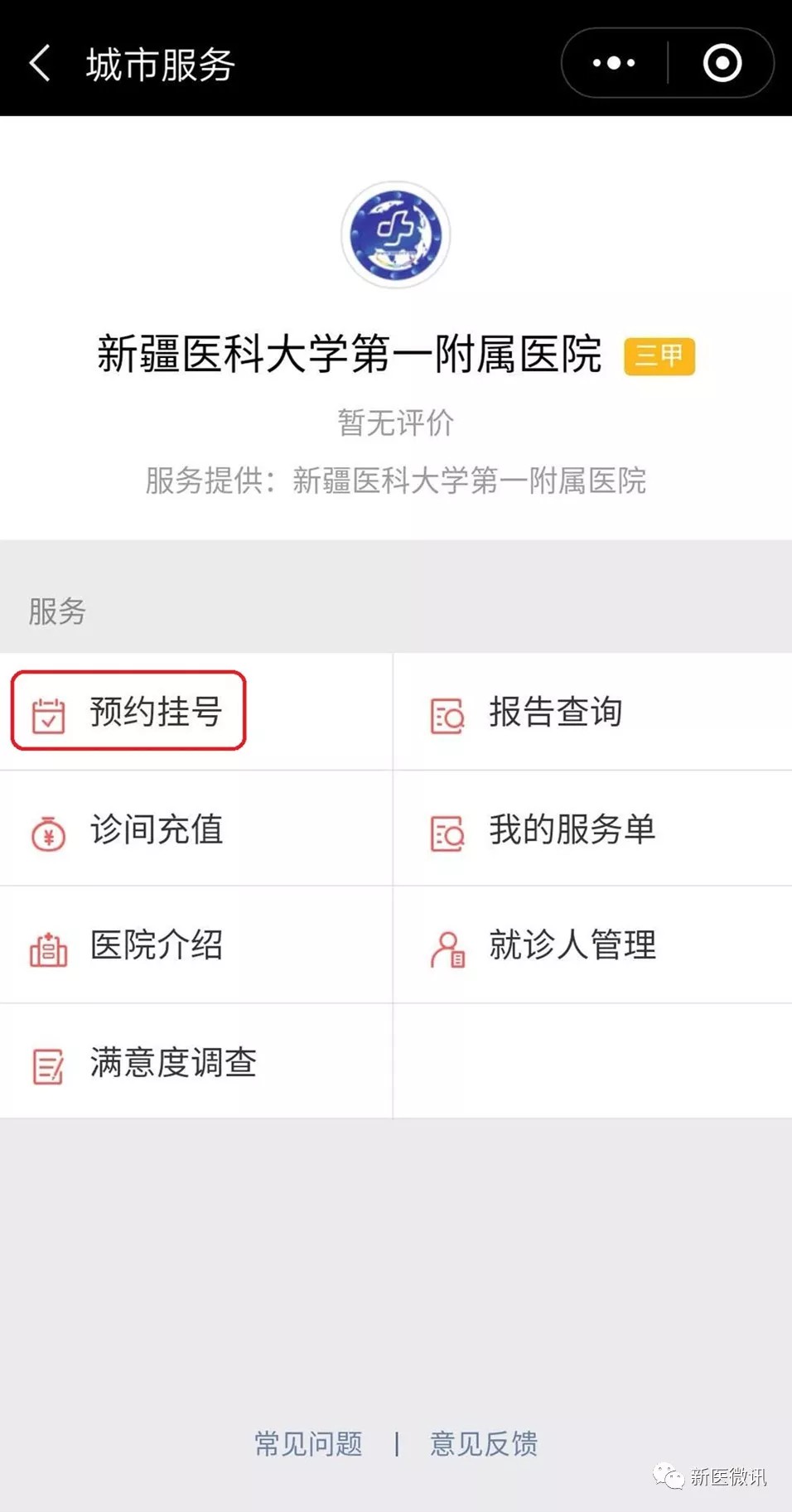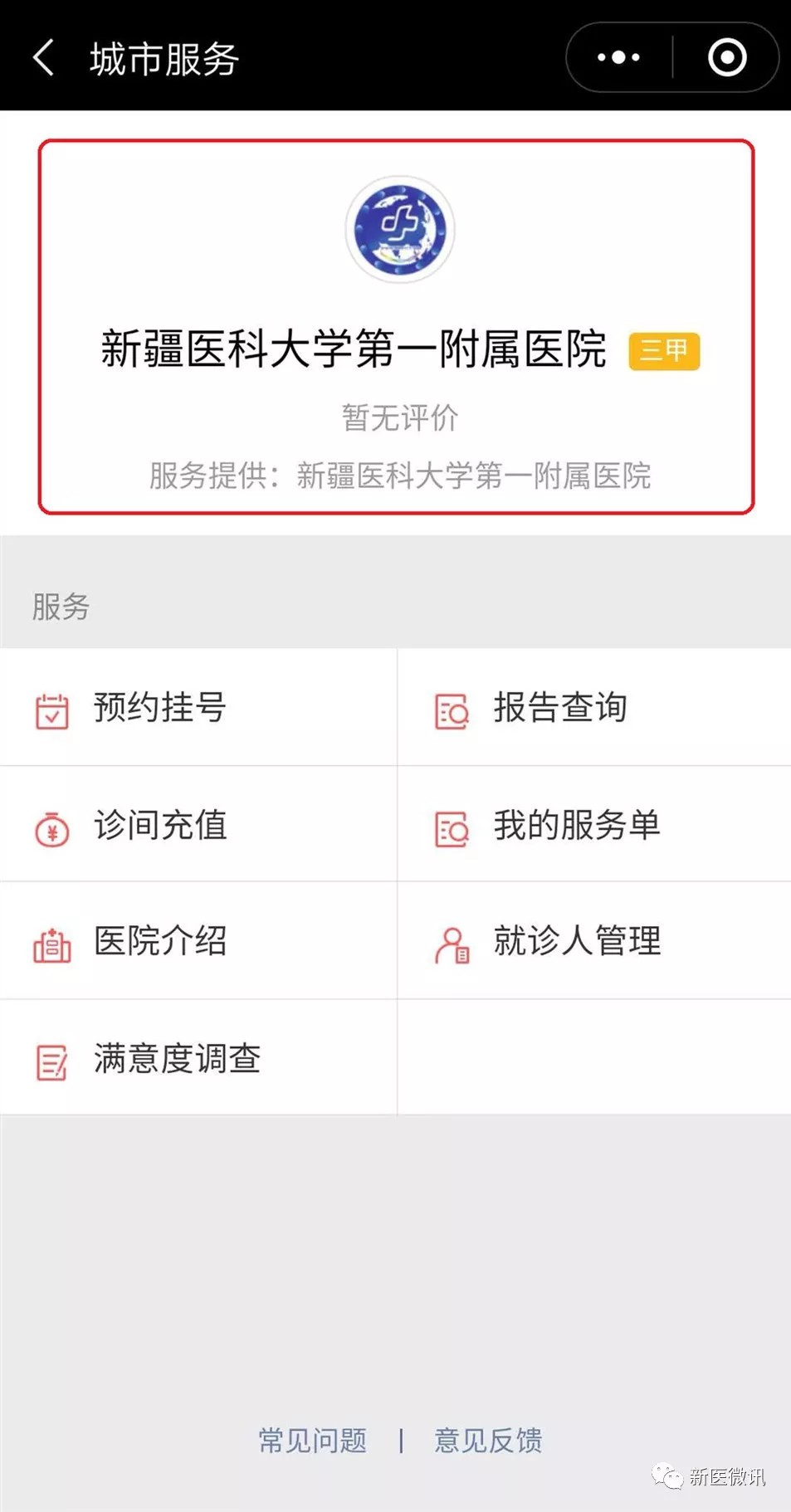 今年11月,新医大一附院在全疆首家上线了微信城市服务,患者用微信钱包就能预约挂号、充值缴费、查询检查结果。