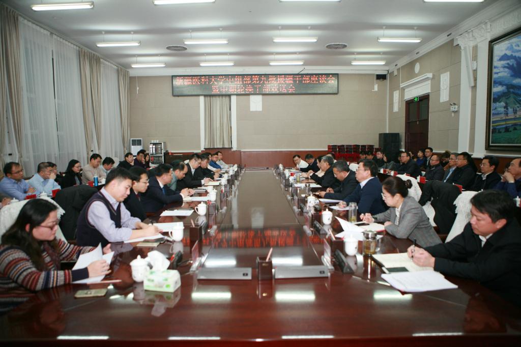 第九批援疆干部代表,科技处副处长黄河、基础医学院副院长胡忠良、维吾尔医学院副院长翟华强、马克思主义学院副院长王为全、药学院副院长李飞、第六附属医院副院长程杰平、第五附属医院副院长李拥军、第一附属医院母胎医学中心产科副主任王艳琴、第二附属医院老年病科、全科医学科、干部一科主任薛青、附属肿瘤医院胃肠外科副主任伍小军、附属中医医院脑病科副主任方堃等先后在会上发言。大家表示,在新疆医科大学工作期间,学校在政治上给予信任,工作上给予平台,生活给予关怀和照顾,为援疆干部发挥优势,全身心投入工作创造了条件。在贯彻落实以习近平同志为核心的党中央治疆方略中,锻炼了党性、磨练了意志、锤炼了作风,增长了才干。政治站位不断提高,“四个意识”得以强化,“四个自信”更加坚定。大家表示,一年新医人,一生新医情。尽管结束了援疆工作,但无论在事业上还是在情感上都与新疆医科大学有着割不断的情义,今后会一如继往地关心支持新疆医科大学的发展,也希望新疆医科大学能够乘风破浪,再创辉煌。