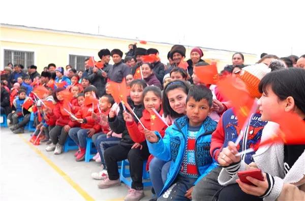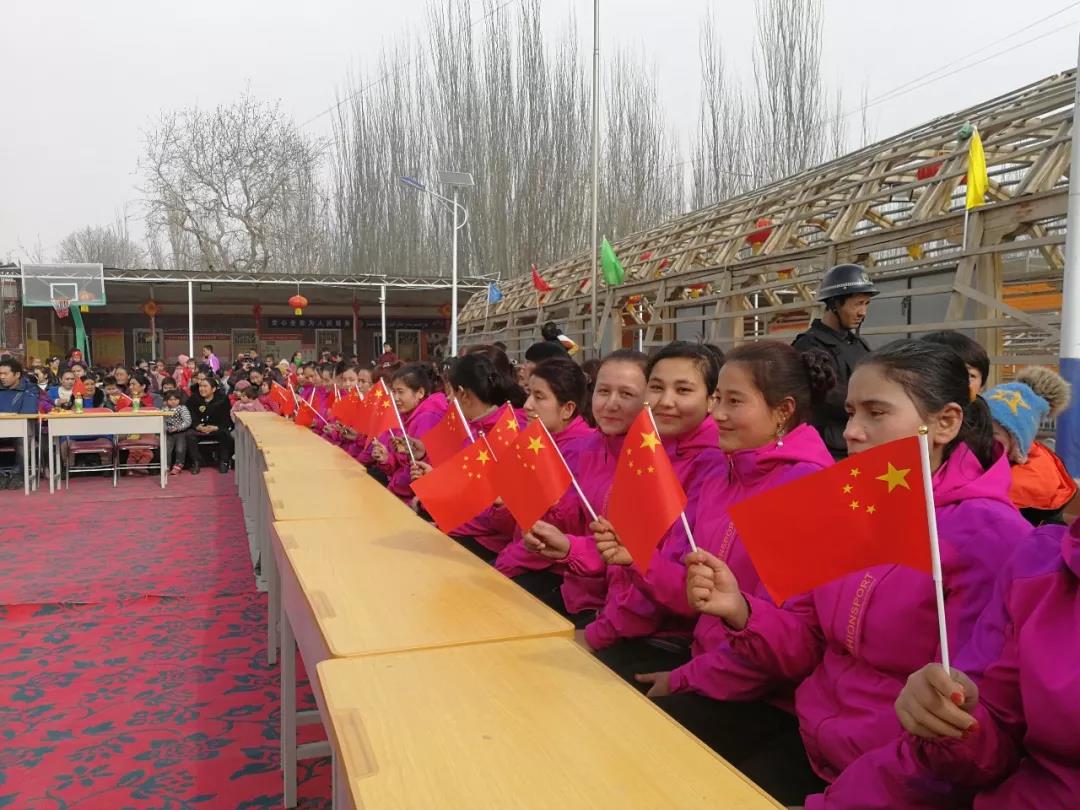 校领导和村民们一起挥舞手中的小红旗,共同唱响《歌唱祖国》的赞歌,祝福伟大祖国更加繁荣富强。校领导还为表现优秀的村干部发放慰问金。