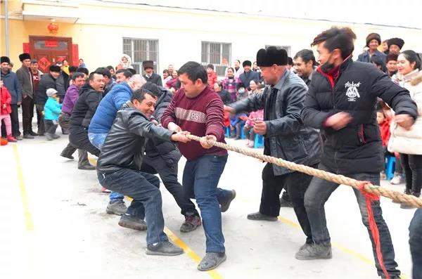 在巴夏克其村,村委会大院里掌声、呐喊声、欢呼声一浪高过一浪,“袋鼠”跳、绑腿跑、拔河比赛等趣味运动火热举行。除此之外还有精彩的斗鸡斗羊齐上阵。村民麦麦提托合提·艾合买提说,比赛很精彩,很长时间没有像今天这样开心了,看到平日里在一起劳作的村民们为团队荣誉而战,真是有种说不出的激动。年味在大家亲切的笑脸、真诚的祝福中蔓延开来。