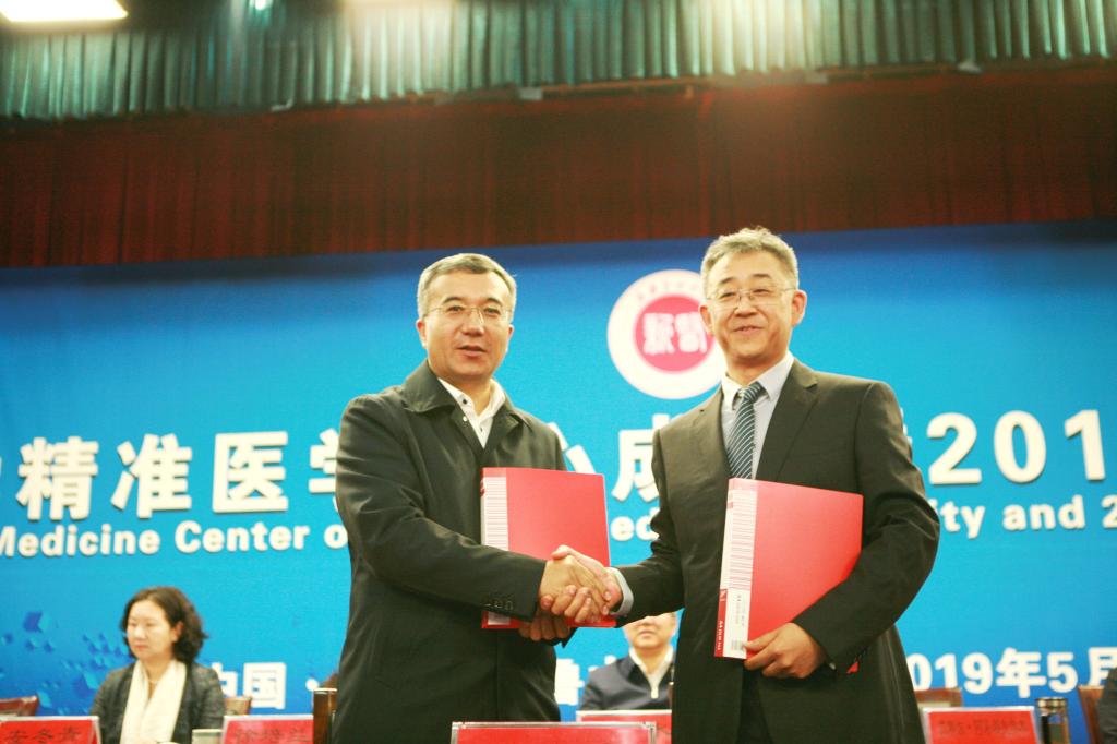 随后,新疆医科大学精准医学中心主任卢晓梅与学校六所附属医院代表签订了精准医学战略合作意向书。