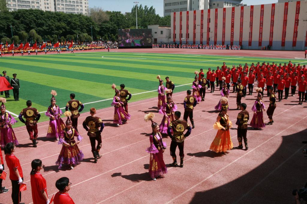 5月25日下午,新疆医科大学19支代表队英姿飒爽的出现在绿草如茵的体育场上,他们用青春与活力,展现着新医人团结拼搏、奋勇争先的精神风貌,他们用昂扬的斗志、嘹亮的歌声歌唱伟大的祖国。