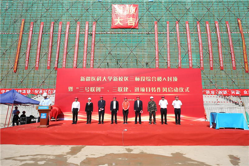 为了如期启用新校区,各建设单位已经进入到了决战决胜的攻坚阶段。今天上午,新疆医科大学新校区三标段综合楼A段的主体封顶,吹响了新疆医科大学新校区建设一期工程九十天会战的号角。