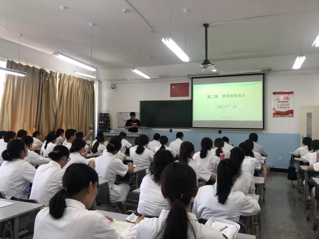 6月6日下午,一堂别开生面的思政课在护理2018-7班进行,由马克思主义学院教师马斌锋和第一附属医院呼吸科贾斌医生共上一堂课,课程内容为《思想道德修养与法律基础》课的第二章节:坚定理想信念。