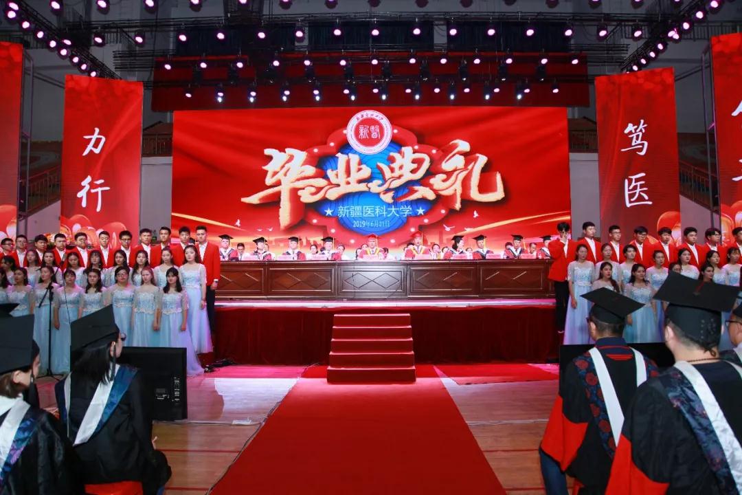 6月21日晚,新疆医科大学2019年毕业典礼在体育馆举行。3338名2019届毕业生顺利地完成学业,即将告别母校,开启新的人生征程。新疆医科大学党委书记高发水深情寄语毕业生们:愿同学们乘着新时代的东风,在拼搏奋斗中放飞梦想,当好时代的追梦人,跑好时代的接力赛,书写属于时代、成就梦想的人生华章。