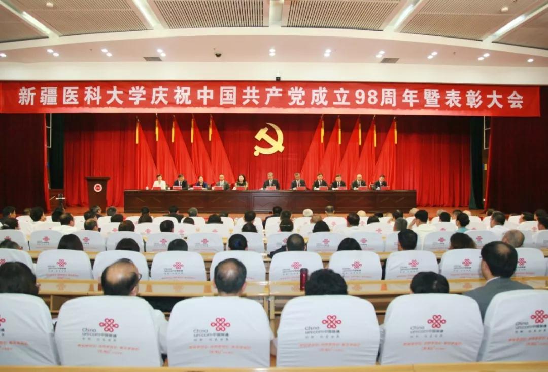 6月29日上午,在中国共产党98岁华诞即将来临之际,新疆医科大学召开中国共产党成立98周年暨表彰大会,庆祝伟大的中国共产党98周岁并表彰在工作中有突出贡献的优秀共产党员、党务工作者及先进基层党组织。