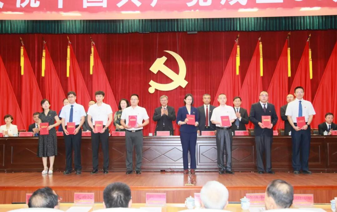 全体在家的校领导为受到表彰的优秀个人和先进基层党组织颁奖,并为“全国党建工作样板党支部”——医学工程技术学院学生党支部进行授牌。