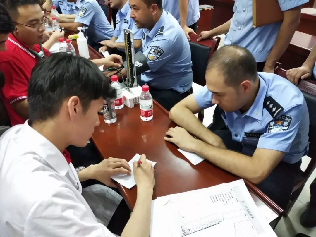 义诊现场,前来问诊的民警络绎不绝,义诊专家们耐心地问诊、看病,实践队员们也竭尽全力协助专家写药单、拿药。此次义诊惠及民警40余名,免费发放药品近千元。