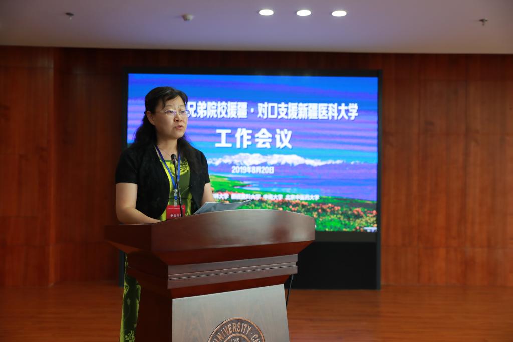 吉林大学党委书记杨振斌在致欢迎辞时指出,对口援疆是党中央、国务院做出的重大决策部署,对口支援新疆医科大学也是各兄弟院校必须完成的政治任务和义不容辞的神圣使命。吉林大学和新疆医科大学在多年的对口支援工作中积累了深厚的感情,今后将认真学习贯彻以习近平同志为核心的党中央对援疆工作的重要部署,以高度的政治责任感和使命感,坚持问题导向、需求牵引,严谨论证、注重考核,重点支持、精准扶持的援疆工作原则,支持新疆医科大学的建设和自治区医疗卫生事业的发展。