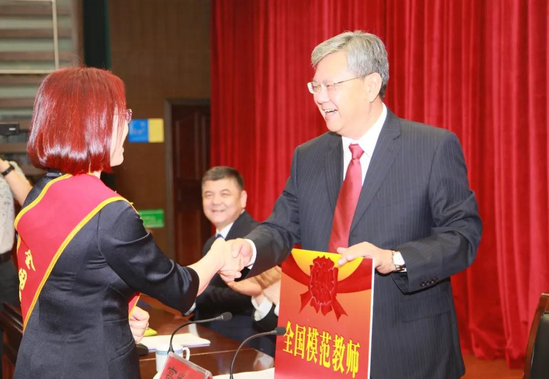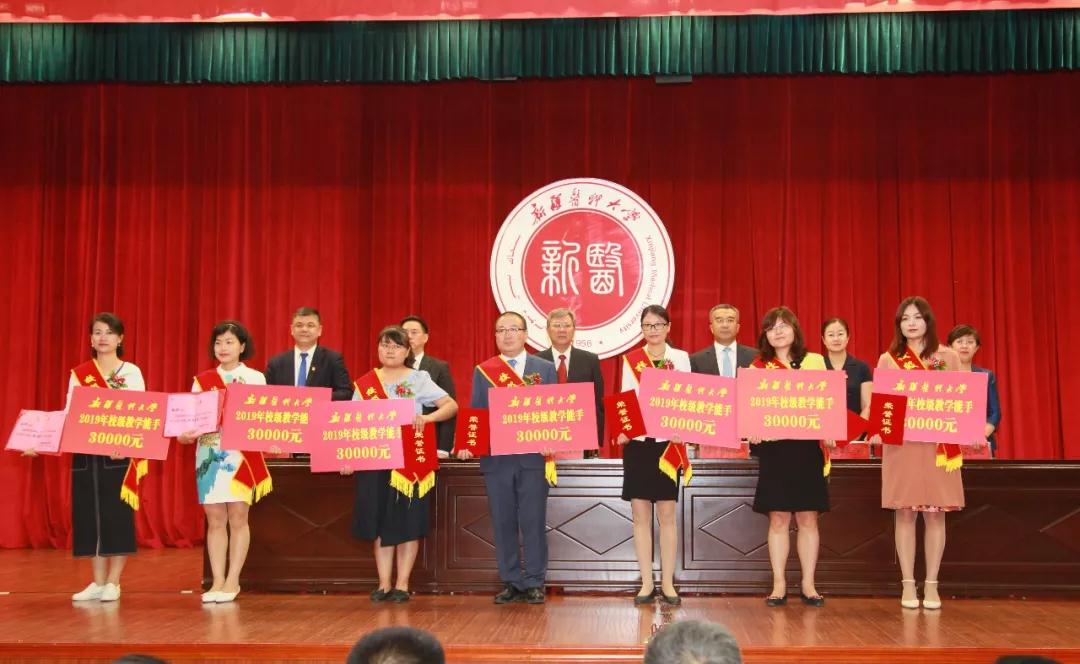 大会首先对在教育教学工作中做出突出贡献的“全国模范教师”马彩玲、“自治区优秀教师”关亚群、陈勤,“自治区优秀教育工作者”沙娜瓦尔·雪克来提以及朱洪斌等7名“以本为本、四个回归”校级教学名师,刘风霞等18名校级教学能手进行了表彰和奖励。