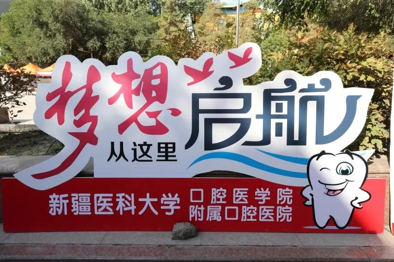 迎新的校园里欢声笑语,喜气洋洋。红色拱门,多彩条幅,美丽的盆景花卉将新疆医科大学装点得绚丽多姿。各学院制作的迎接新生的展板--向祖国告白、欢迎新同学让现场喜庆而热烈。