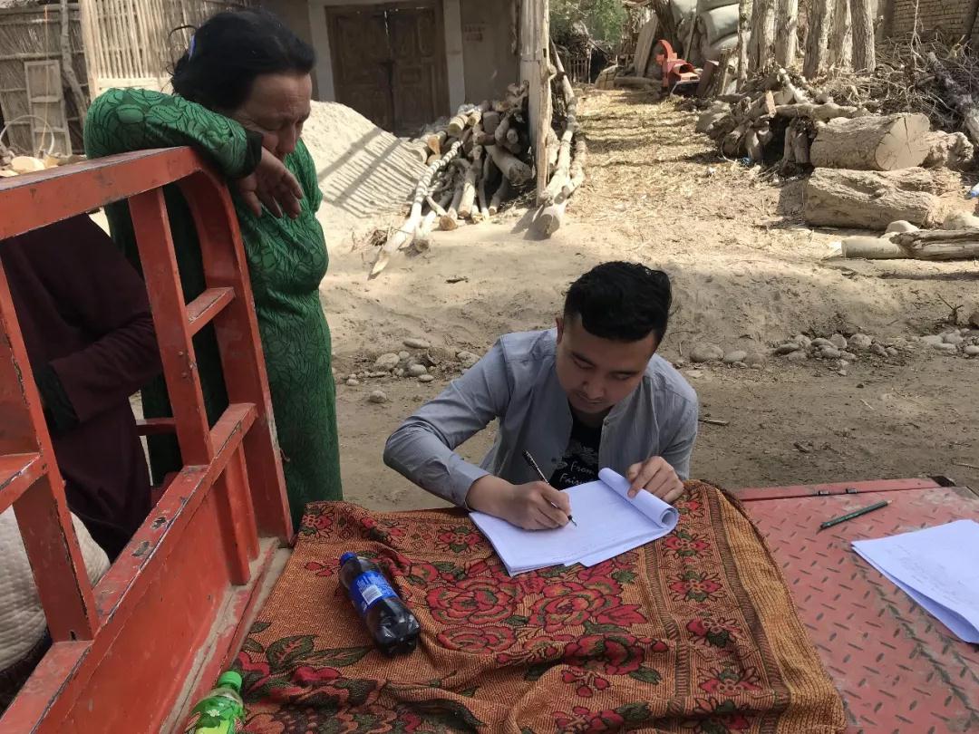 开赛尔江·尼牙孜,一个阳光开朗的90后阳光大男孩,自2017年2月至今,一直在新疆医科大学驻墨玉县扎瓦镇巴夏克其村“访惠聚”工作队工作。与现在面对村民的自信和从容不同,刚到村里的时候,年轻且没有任何基层工作经验的开赛尔江心里还是有些不安的,面对陌生的生活和工作环境,总感觉村里的工作千头万绪,不知从何抓起。再加上巴夏克其村是自治区深度扶贫村,全村贫困发生率达42.7%,要想打赢脱贫攻坚这场战役,实属不易,作为扶贫专干的开赛尔江,深知自己身上肩负着沉甸甸的责任,强烈的责任感促使他自觉自愿又积极主动地走近村民、走入农户。
