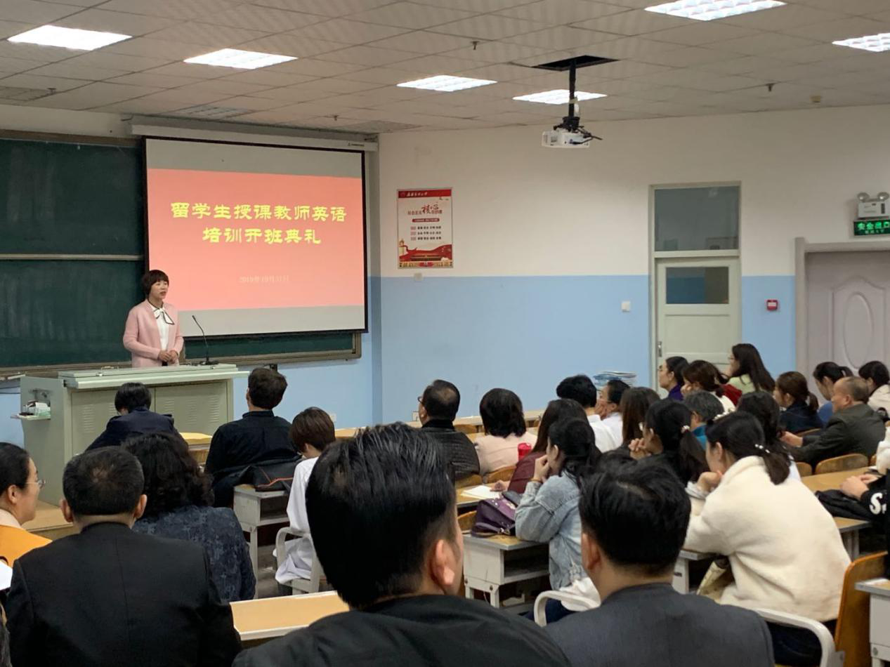 10月31日,为进一步提高我校留学生英语师资外语水平,提高留学生英语授课、实习带教师资及研究生导师语言能力,并为留学生教师团队储备力量,由外事处、语言文化学院、国际教育学院联合组织的2019年第一学期留学生英语授课教师英语培训班正式开班,校党委常委、副校长安冬青在开班典礼上讲话。