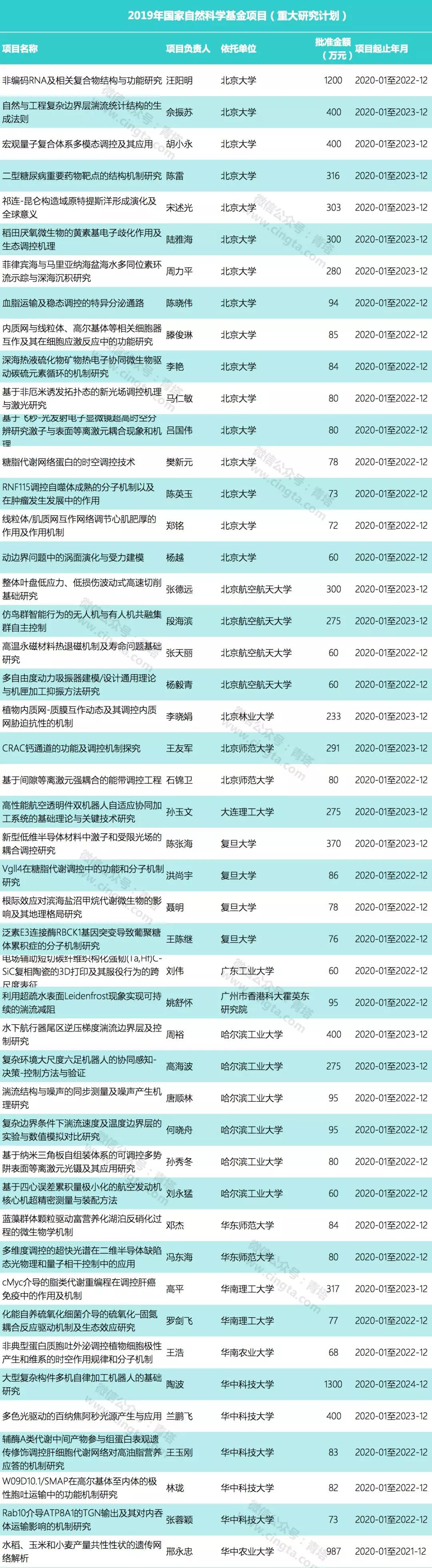 作为我国科研体系中的重要组成部分,国家自然科学基金在促进我国整体基础研究水平提升、基础学科建设与发展、优秀科技人才培养等方面发挥了巨大作用。高校获得的国家自然科学基金立项数,已成为衡量高校和科研机构科研实力的重要标尺。近日,国家自然科学基金委员会更新了科学基金网络信息系统,公布了2019年集中受理期未公布的部分项目。这些获资助项目主要是金额较大、含金量比较高的重大项目,包括国家基础科学中心项目、重大仪器项目(部门推荐)、重大研究计划项目等,涉及项目总经费超过17亿元。不过截止到2019年11月4日,国家杰出青年基金项目、重大项目等尚未公布。