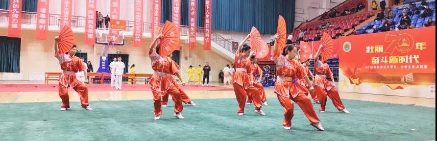 11月15日到17日,2019年自治区大学生、中学生武术联赛在新疆医科大学体育馆举办。本次比赛级别为自治区级,主办单位为新疆维吾尔自治区教育厅、新疆学生体育协会,承办单位为新疆医科大学。有参赛学校31所,其中13所高校和18所中学,参赛队员共329人。我校共获得21枚奖牌,大学生甲组集体拳术第一、大学生甲组集体器械第二。个人奖第一7个,第二7个,第三5个,第四3个,第五1个,第六1个。