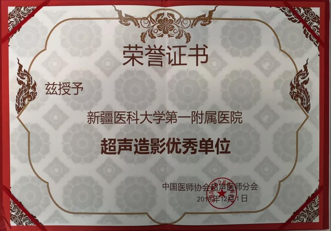 12月1日,由中国医师协会超声分会主办的“扬帆启航CUDA超声造影巡讲”在海口召开,会上对超声造影优秀单位进行了表彰。新疆医科大学第一临床医学院(第一附属医院)获得“超声造影优秀单位”荣誉称号,全国共有4家单位获此荣誉。