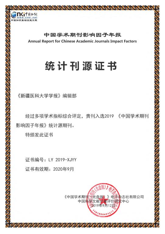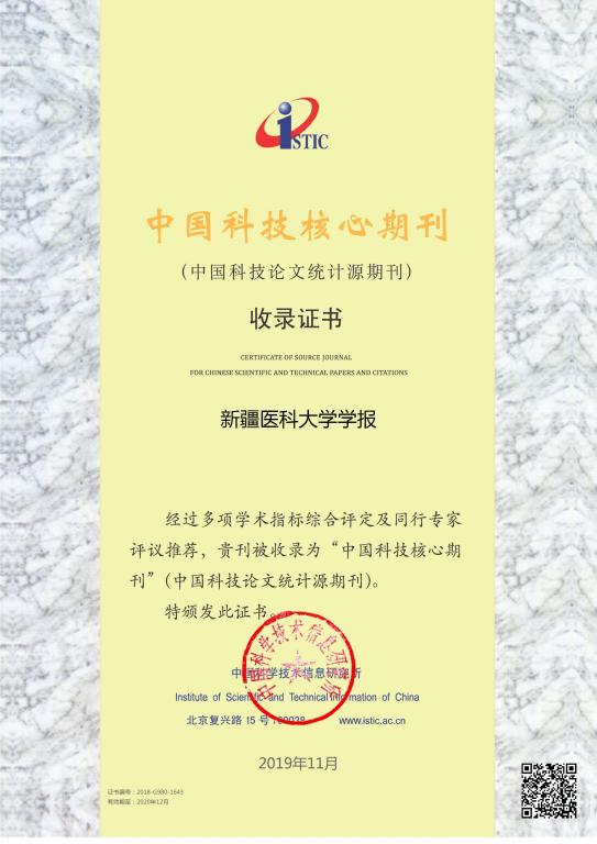 《新疆医科大学学报》再次入选“中国科技核心期刊”。我校学报自2012年入选中国科技核心期刊,目前已连续8年被中国科技核心期刊收录,重要期刊评价指标扩展影响因子提高到1.405,比去年提升38%;在56种医药大学学报核心期刊中稳居第28位;学科扩散指标12.87,较去年提升79%,红点指标0.52,与去年持平;地区分布数16,比去年提升14%;机构分布数93,较去年提升52%。