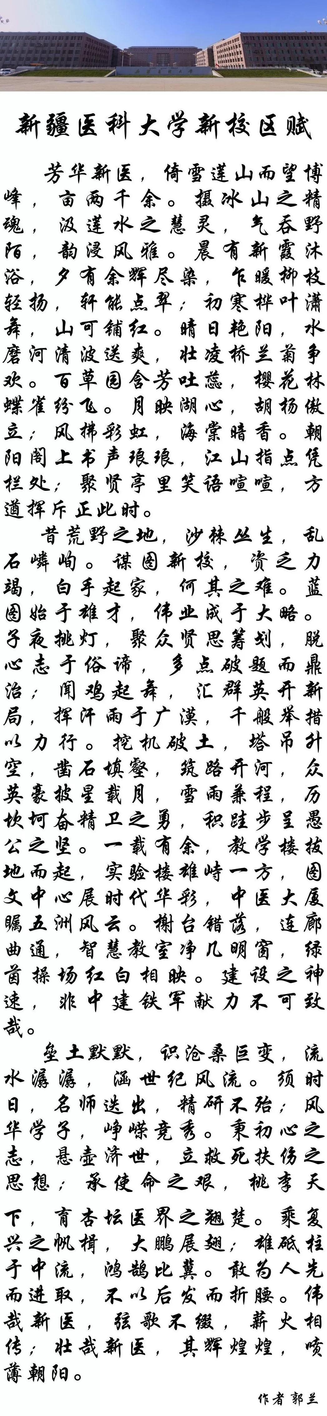 面对新的伟大征程,让我们为建设西部乃至全国一流的新疆医科大学,一路高歌、一路奋进、一路辉煌!
