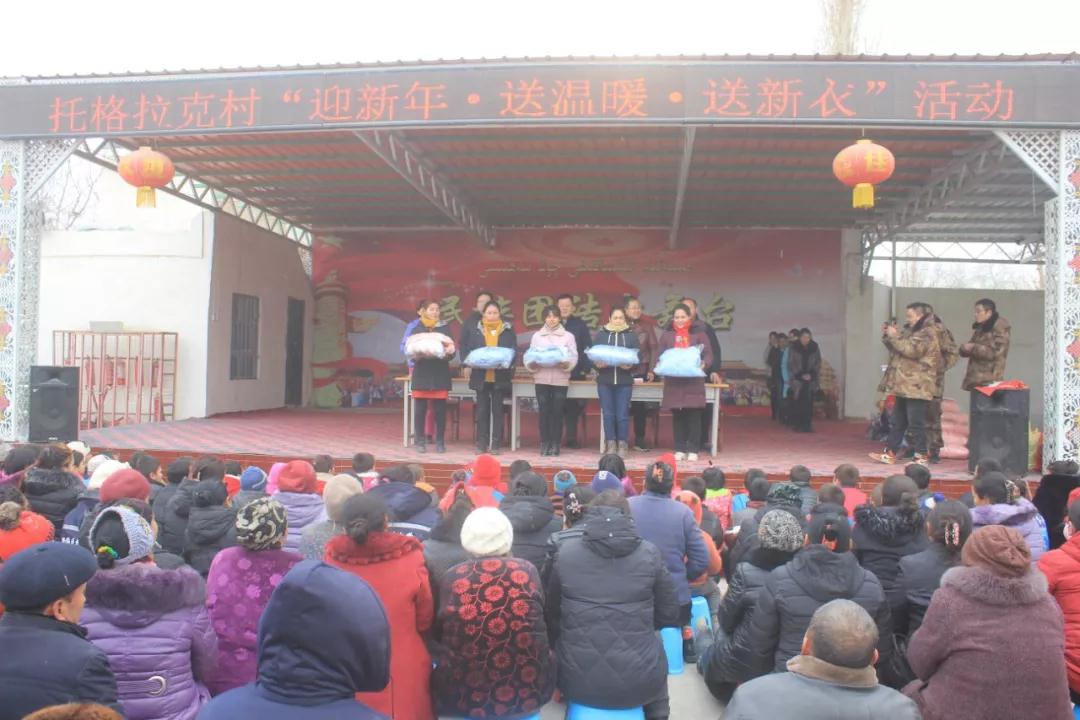 1月8日,驻托格拉克村工作队开展了“迎新年、送温暖、送新衣”春节慰问活动,为200户家庭困难的村民赠送价值3万元的200件羽绒服,让贫困户们过上一个愉快祥和的新春佳节。