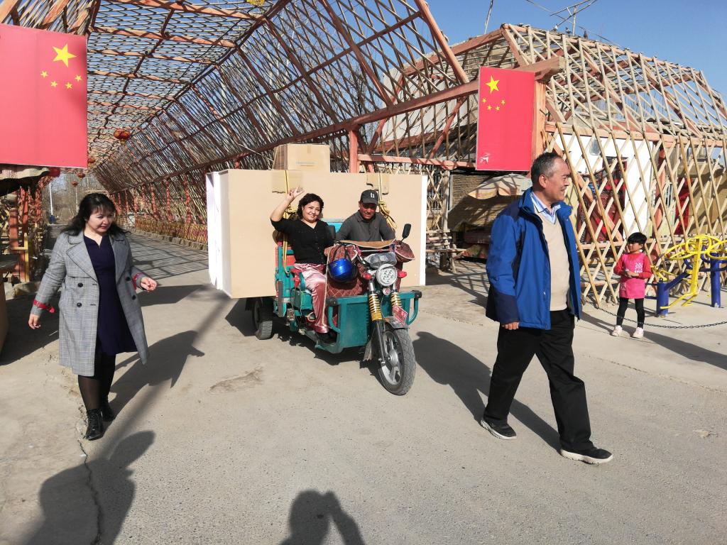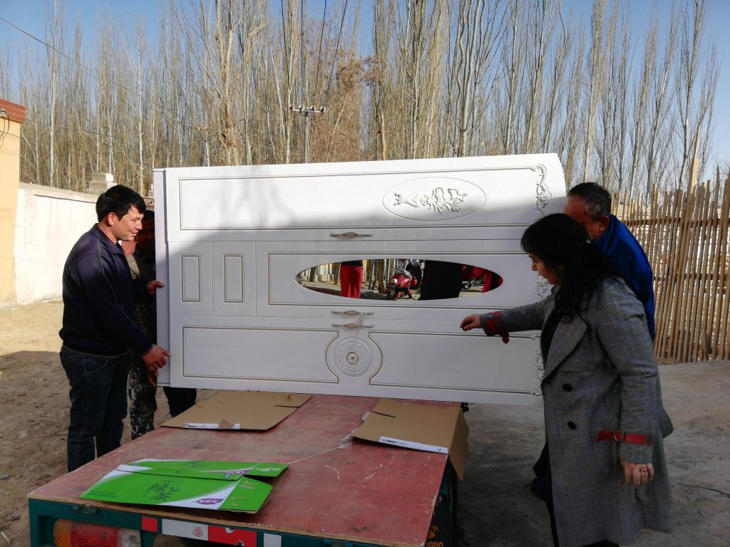 结亲干部努尔亚木刚到墨玉县托格拉克村就为亲戚家买了羊肉、蔬菜和水果,见到了久别的亲戚,两人紧紧拥抱在一起,唠家常、话别离。发现亲戚的冰箱坏了,努尔亚木老师主动出资购买了大冰箱和数字液晶电视。在驻村工作队的及时对接和联动下,亲戚家焕然一新。结亲干部阿依夏木古丽的亲戚是贫困户,这一次,她给亲戚家购买了漂亮的衣柜和数字液晶电视。
