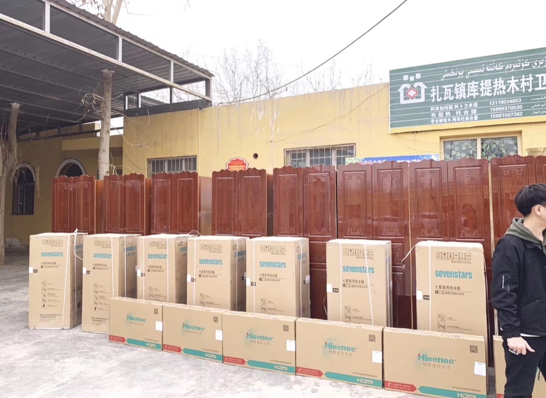 仪式上,第六附属医院党委书记骆朝辉将医院全体工作人员捐赠的帮扶资金交给了库提热木村第一书记杨建和村支书艾日夏提,并向库提热木村贫困家庭发放了全院职工自发捐款购置的电视机、电冰箱、衣柜等物品。
