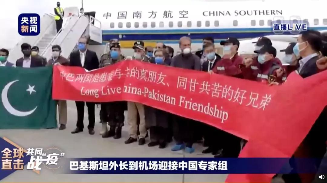 巴基斯坦外长库雷希等多位政府官员,以及中国驻巴基斯坦大使馆工作人员在停机坪等候,库雷希与中国医疗队成员一一握手,表示热烈欢迎和由衷感谢。