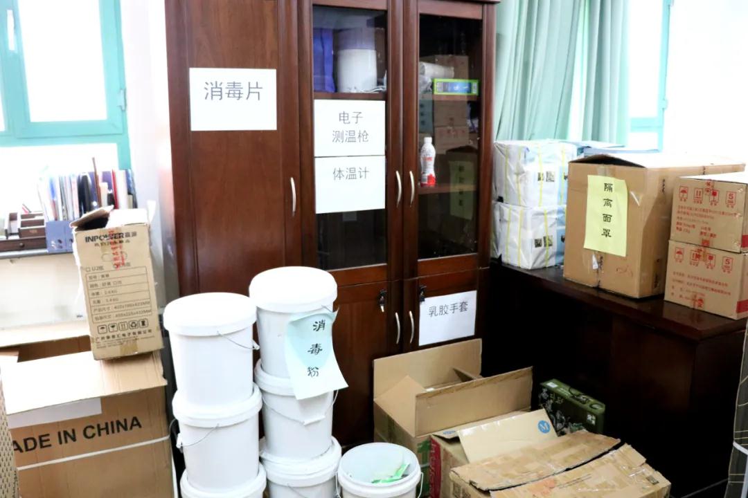 在物资储备点,师生用的防护口罩、测温枪、消杀用品等重点物资库存充盈,防疫物资储备能够最大限度保障学校防疫工作的需要。