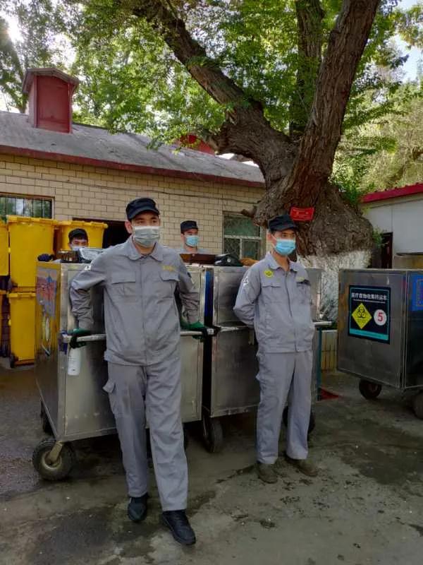 每天早上,当晨曦照进医院旁的林荫小道时,如孜巴克·阿布地力克木和同事们已经穿着制服,推着医疗废弃物收集车在各个住院部忙碌穿梭了。
