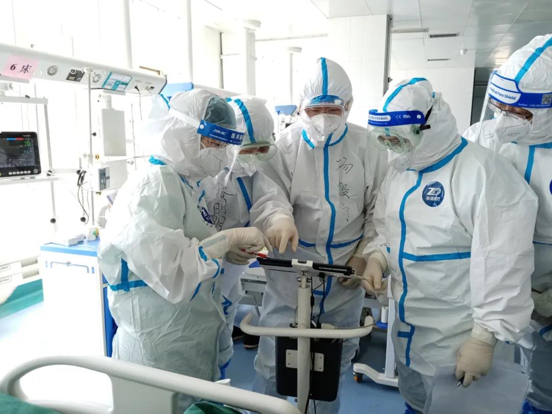 杨毅宁教授(右二)正在新冠肺炎医疗救治定点医院救治患者。