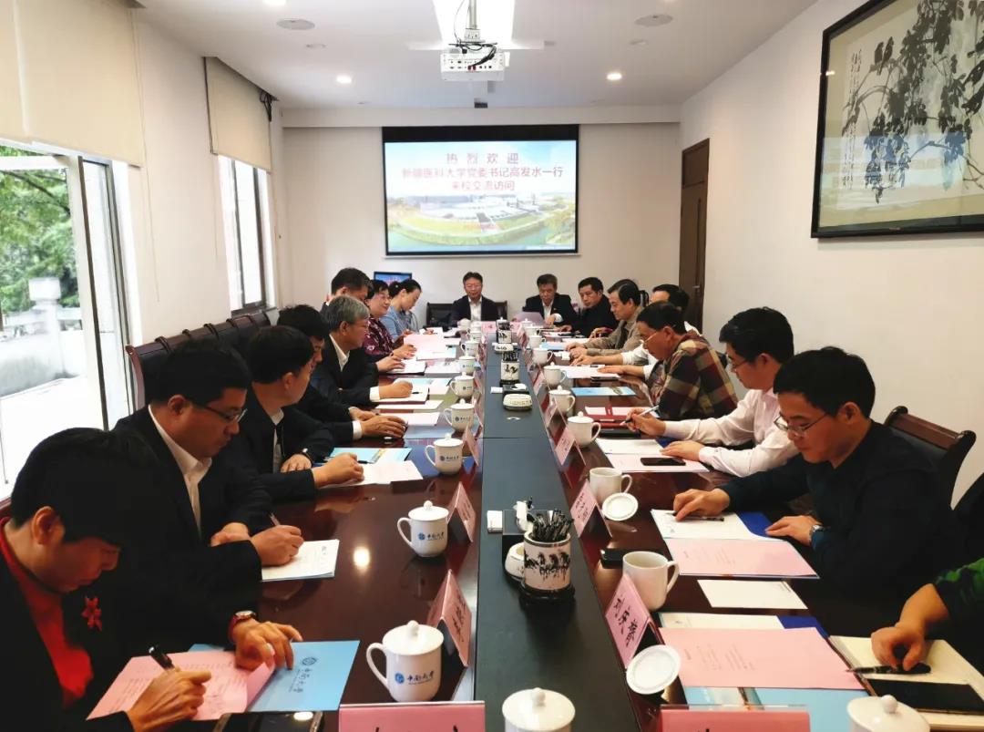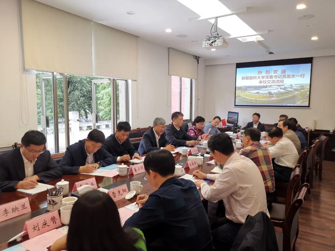 9月24日上午,新疆医科大学党委书记高发水一行赴中南大学学习访问,并就对口援疆事宜开展交流座谈。中南大学党委书记易红,党委常委、常务副校长胡岳华,我校党委常委、组织部部长祁永福及相关部门负责人参加会议,会议由胡岳华主持。