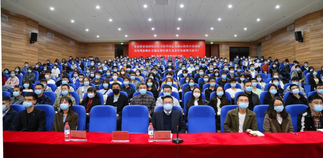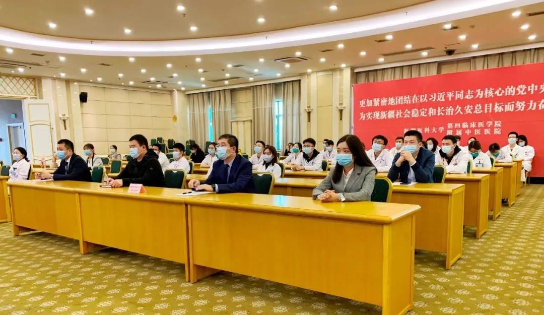 高发水书记带领大家回顾了新医的发展历史,讲述了一个个为新疆医疗卫生事业做出了卓越贡献的新医老一辈革命者身上展现出的伟大抗疫精神。他说,新疆医科大学是一所深耕伟大抗疫精神,具有光荣历史和红色基因的高等学府。一大批来自北京、上海、山东、沈阳等地的优秀教师、医护工作者,怀揣着建设边疆、服务边疆、献身边疆的伟大梦想,不远千里汇聚到西部边城,投身于新疆医学事业,用激情理想、睿智才学、忠诚坚守,奠定了学校医学教育发展的坚实根基,铸就了大爱精诚的不朽医魂。姚秉礼、汪师贞、何秉贤等老一辈建设者们就像不倒的英雄胡杨,全心全意护佑着新疆医学教育这片珍贵的沙漠绿洲,献了青春献终身,献了终身献子孙,激励着一代代新医儿女坚守初心、奋勇前行。64年来,伟大抗疫精神早已深深根植于新医人的精神血脉和红色基因,并在学校各项事业发展中不断延伸、不断丰富,引领着新医人在新时代新征程上创造了一个又一个辉煌和荣光。尤其是在新校区闯关夺隘、艰苦卓绝的创建历程中,新一代新医人冲得上去、顶得起来、豁得出去,敢于把不可能变成可能、善于把不敢想变成现实,创造了全疆乃至西部地区高校新校区建设速度和质量的“历史之最”。这是对伟大抗疫精神的生动诠释,是新医人对医学教育高度负责的有力证明。作为2020级入校的新生,你们将在“厚重大气而不失现代、潮流时尚中又见经典”的新校区享受国内一流的医学教育,度过人生最美的芳华岁月,成就人生最大的光荣梦想。
