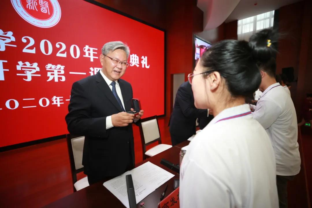 全体校领导为新生代表授“新疆医科大学校徽”,给2020级的小萌新们赋予了“新医人”的靓丽名片,激励同学们在新医这块百炼成钢之地开启追梦圆梦的新时代。