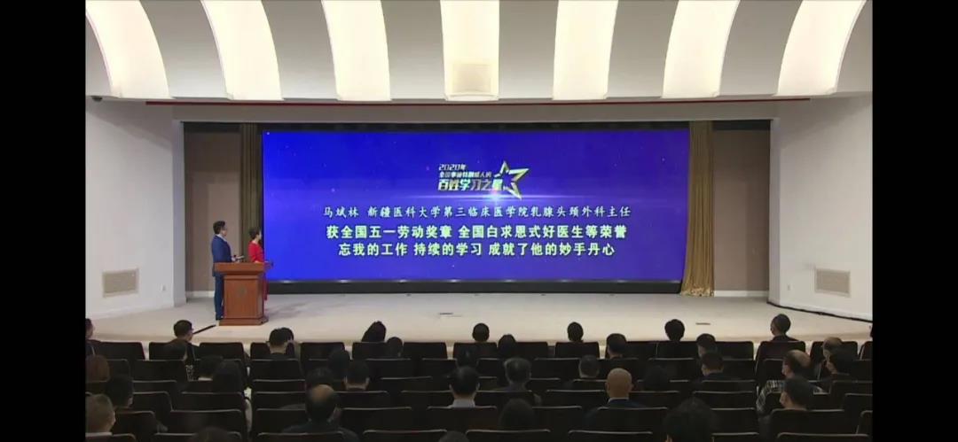 近日,由教育部职业教育与成人教育司、中国联合国教科文组织全国委员会秘书处、中国成人教育协会主办,上海市教育委员会、复旦大学承办的“2020全民终身学习活动周”全国总开幕式上,新疆医科大学附属肿瘤医院乳腺头颈外科主任马斌林教授被评为全国“事迹特别感人的百姓学习之星”,是新疆唯一获此殊荣者,先进事迹视频在总开幕式上展播。