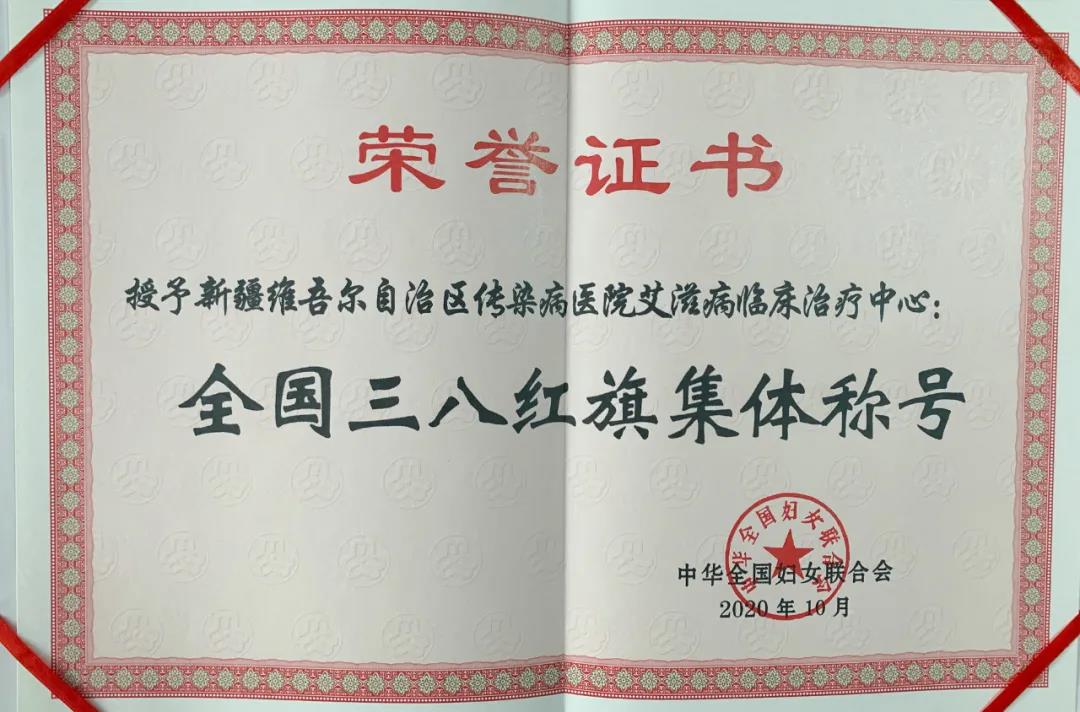 近日,新疆医科大学第八临床医学院(第八附属医院)艾滋病临床治疗中心被授予“全国三八红旗集体”称号。