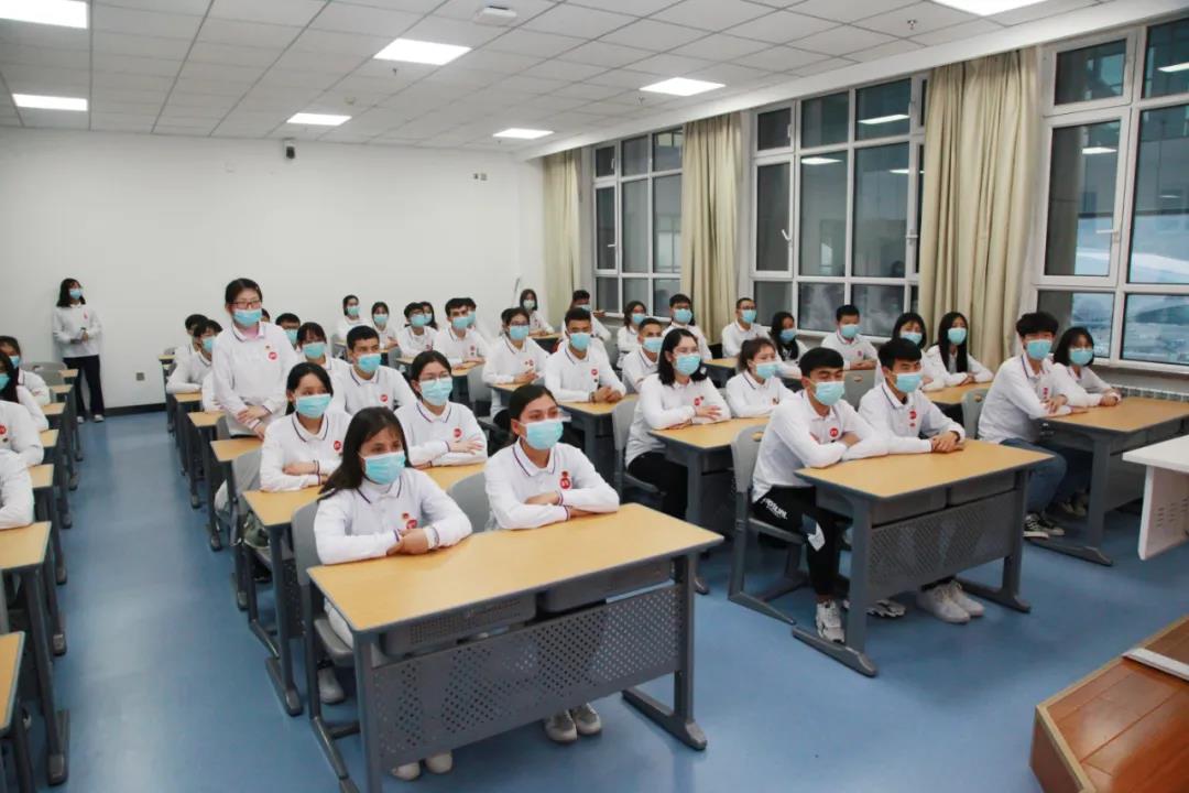 第三临床医学院麻醉2020-2班的学生聆听联系班级处级干部的党课