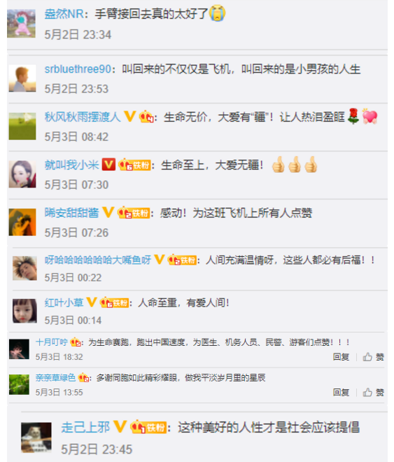 长腿阿轩臭屁我也爱:太好啦!!感谢机组人员还有飞机上的乘客!小男孩接臂成功真是太好了!!以后要好好成长啊!!